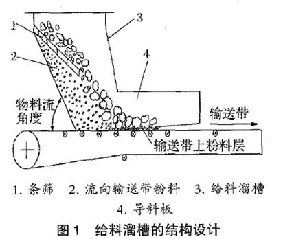 为了大限度减小给料口输送带的磨损,给料口的结构设计应该满足以下条件: