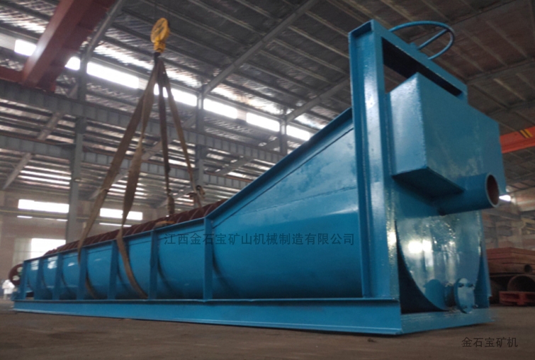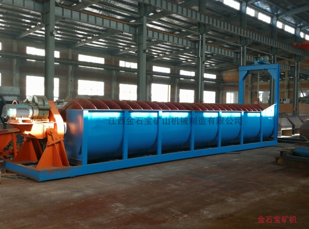 选矿专家建议,在确定的处理能力下,应尽量选用单螺旋分级机。据统计,双螺旋分级机的螺旋工作负荷是单螺旋分级机的0.6-0.75倍,效率相对较低。因此,在选用螺旋分级机时必须根据处理能力来确定其合适的螺旋转速和个数。