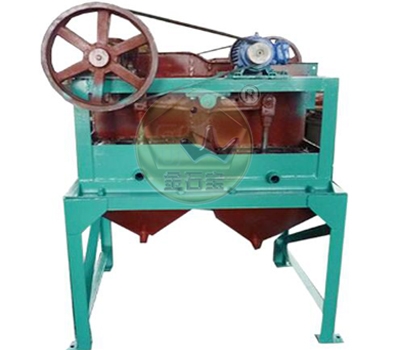 1、电动机 2、传动部分 3、摇臂 4、连杆 5、橡胶隔膜 6、机架 7、排矿口 8、跳汰室 9、隔膜室 10、补水口